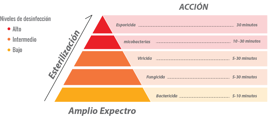 Esporicida, para algunos microorganismos de la tabla abajo señalada, sin diluir, a los 22-30 minutos de exposición8,9.